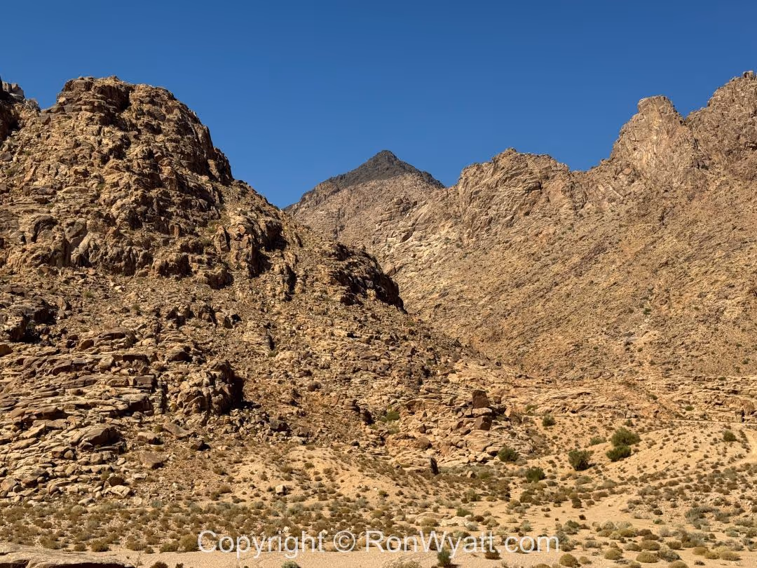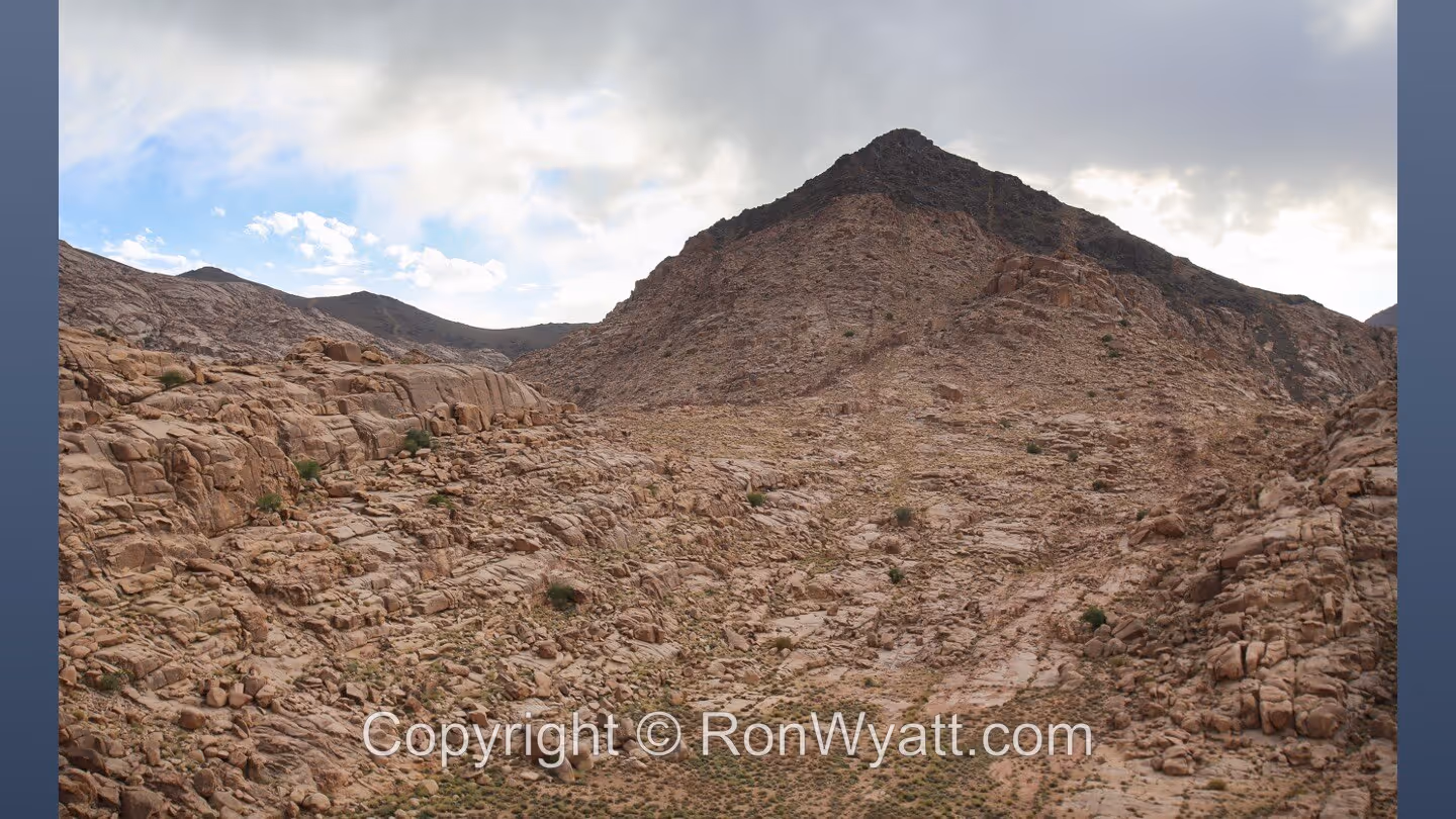 When Ron studied the Biblical account, he noted these references- that the mountain to which Moses was to lead the people was in Midian; and that the place where Moses spoke to God in the burning bush was specifically stated to be in the "backside of the desert". With this information, along with the discoveries of the chariot parts in the Gulf of Aqaba, he looked for a mountain on the eastern side of the gulf which fit this description. There was only one candidate in his opinion, and this was Jebel el Lawz.