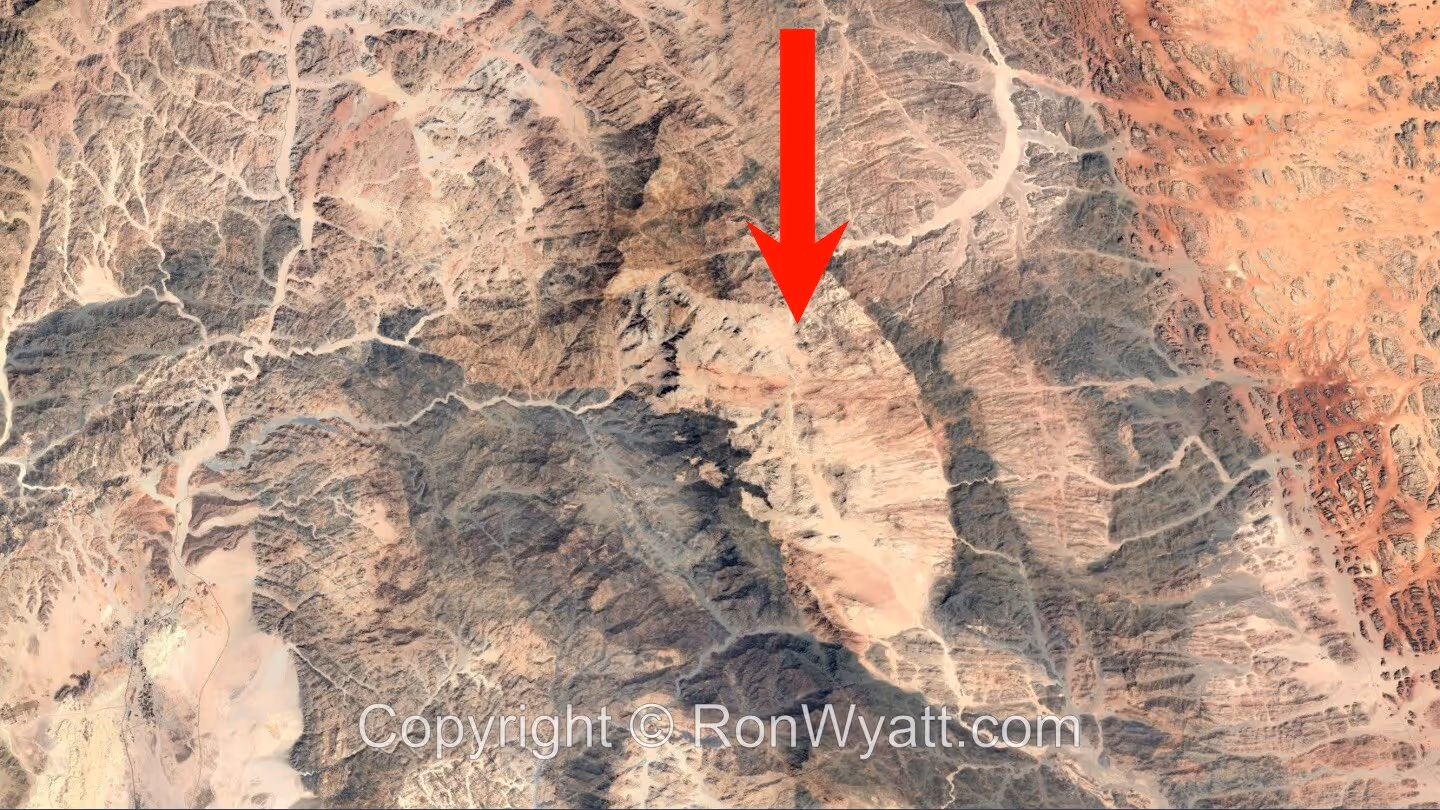 His flight maps showed this mountain to be in an almost semi-circular range, with a vast desert area around it as well as more than enough room for the encampment of perhaps a couple of million people along with their flocks and herds. Not only that, but there was a single, large oasis located fairly nearby- an area that could have been the home of his father-in-law, Jethro- and this was the town of Al-Bad. He saw that there was desert area around Jebel el Lawz, between Al-Bad and the highest peak in this mountain range- and that there were valleys in the mountain range which Moses could have led his flocks through, taking him to the "backside of the desert". Ron was convinced that this mountain had to be the one.